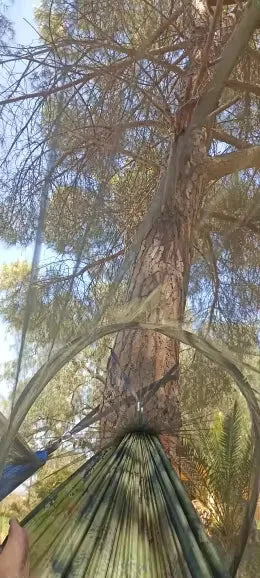 Wage dich mit Vertrauen in die Wildnis. Unsere Hängematte bietet die ultimative Kombination aus Komfort, Stärke und Schutz. Mit ihrem hochfesten Fallschirmstoff und integriertem Moskitonetz kannst du unter den Sternen ohne lästige Mückenstiche ruhig schlafen. Nimm sie überallhin mit, dank ihres leichten Designs und der praktischen Aufbewahrungstasche. Entwickelt für alle Abenteurer, die die Freiheit und Schönheit der Natur lieben.