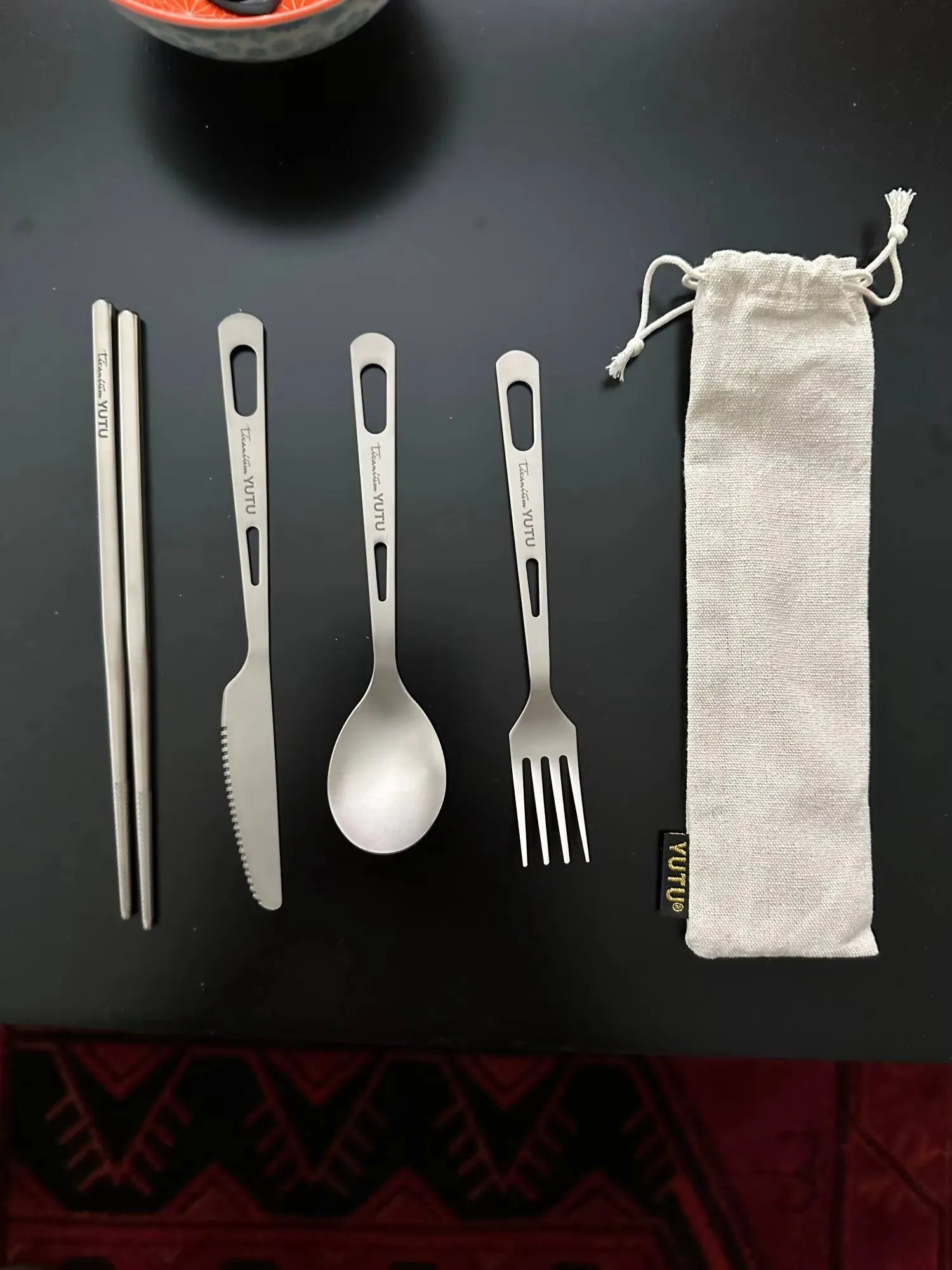 Dieses Titan-Essgeschirr-Set hat unsere Outdoor-Mahlzeiten von langweilig zu fabelhaft gemacht! Wir sind begeisterte Camper, und diese Utensilien haben unseren Reisen einen Hauch von Eleganz verliehen. Das Schöne daran ist seine Haltbarkeit; es läuft nicht an, verzieht sich nicht und bricht nicht. Wir haben ein paar Teile auf Felsen fallen lassen, ohne Kratzer. Und ja, wir haben einen anderen Camper mit Neid blicken sehen! Diese sind teurer als Plastik, aber sie sind jeden Cent wert für die umweltfreundlichen, gehobenen Dining-Vibes.
